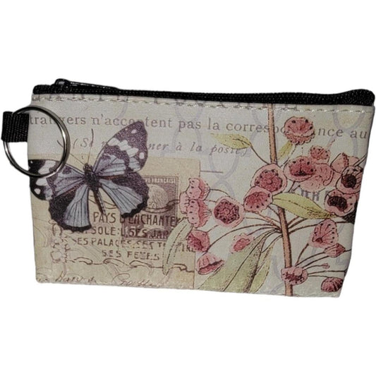 Butterfly and Floral Print Coin Purse with Key Ring
