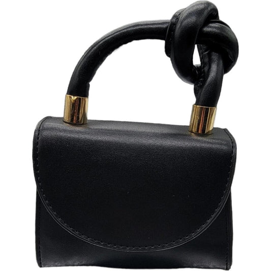 Black Mini Handbag with Knotted Handle and Gold Chain Strap